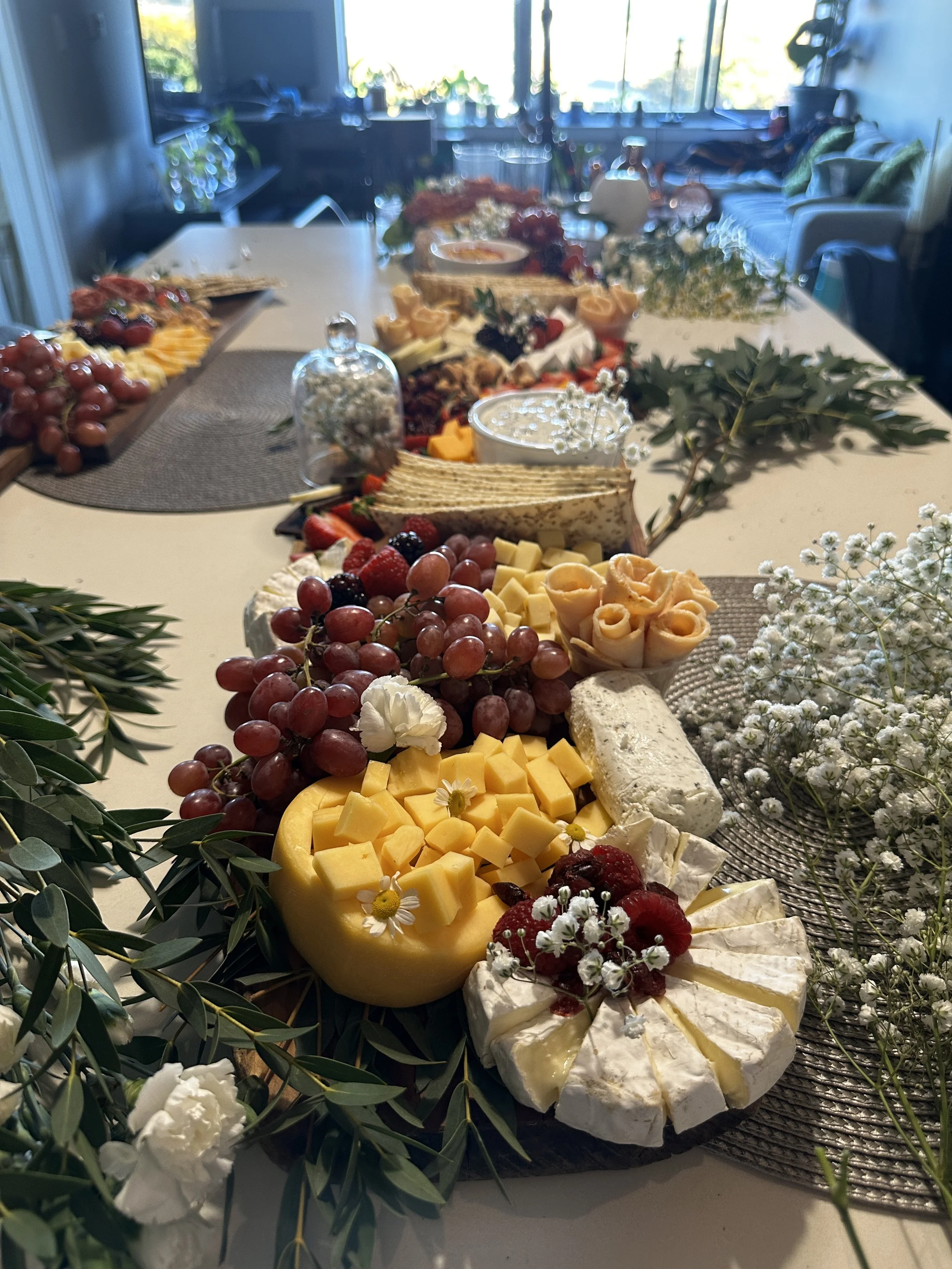 Our large charcuterie board is the ultimate centerpiece for gatherings, serving 8-12 people with an impressive assortment of gourmet delights. Featuring an exquisite selection of artisanal cheeses, premium cured meats, fresh fruits, crackers, nuts, and decadent spreads, this board is crafted to wow your guests with both flavor and presentation.