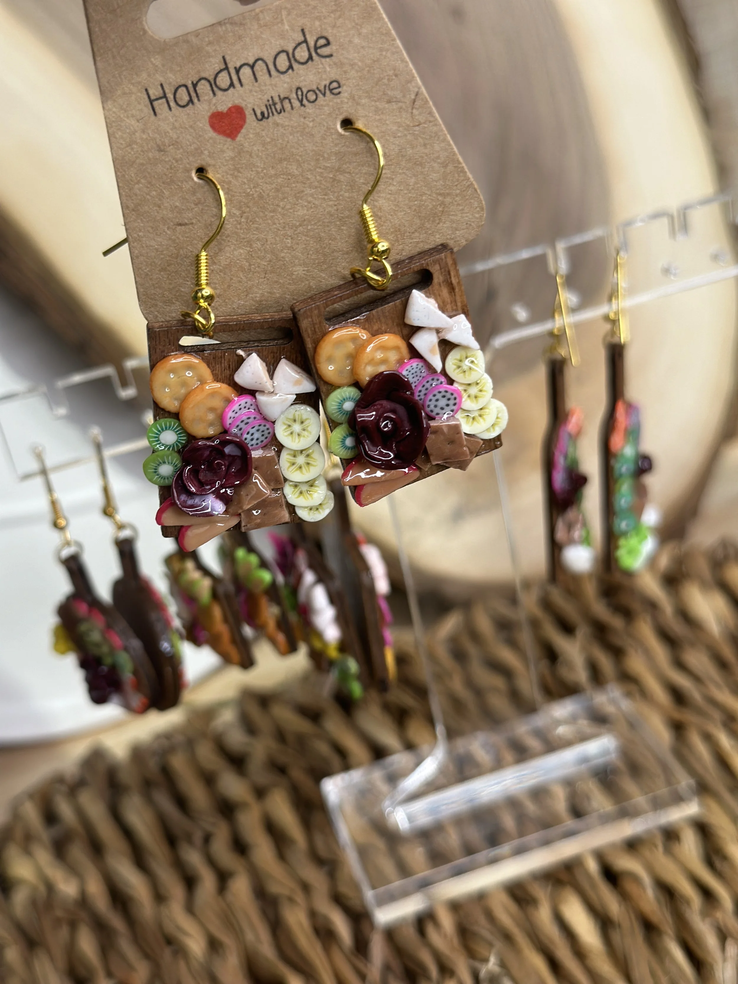 Add a touch of charm and foodie fun to your style with our handmade charcuterie earrings! These miniature works of art feature tiny, detailed replicas of charcuterie boards, complete with cheeses, meats, fruits, and crackers. Lightweight and unique, they’re the perfect accessory for food lovers or a quirky gift to delight any charcuterie enthusiast.