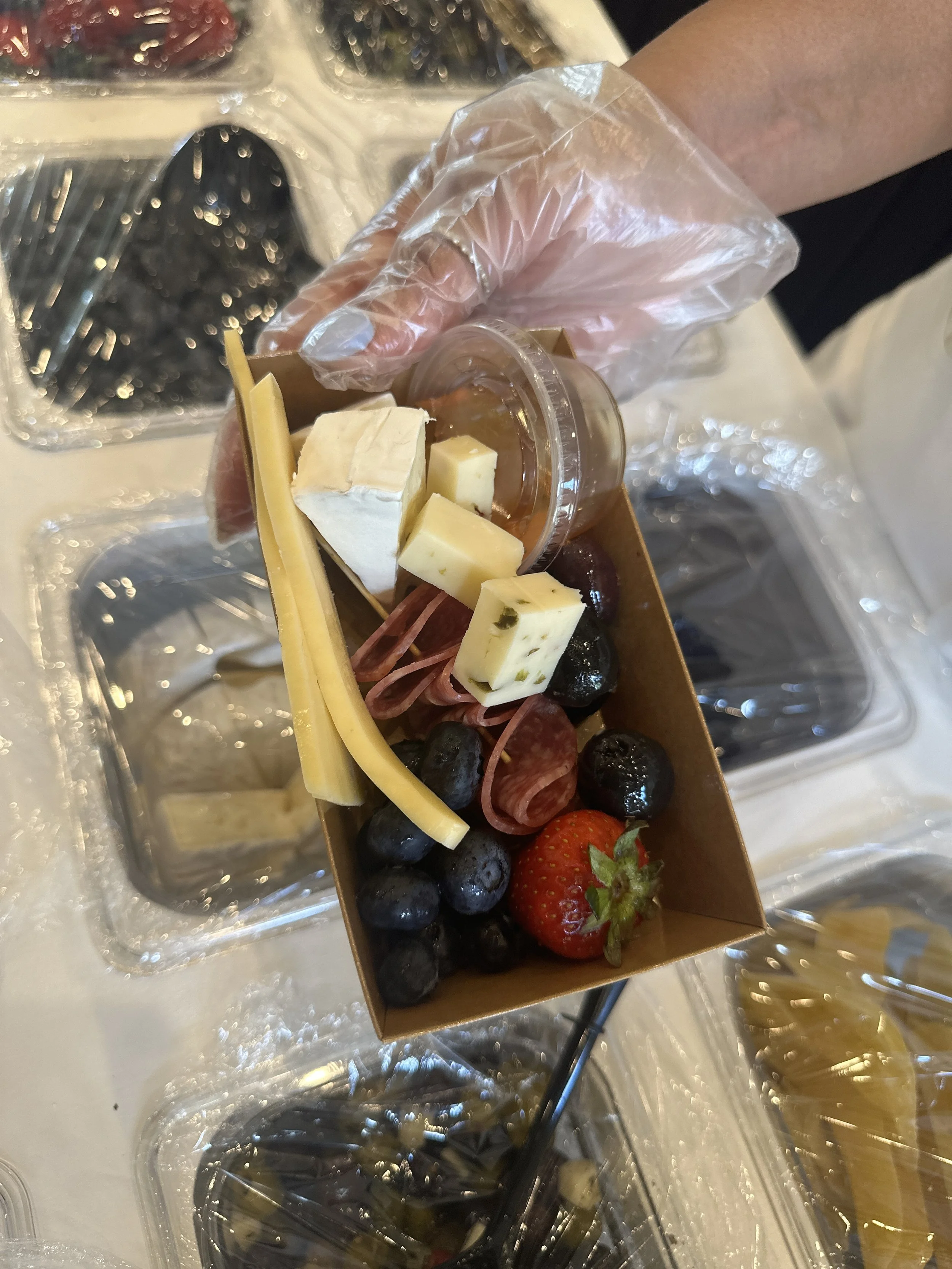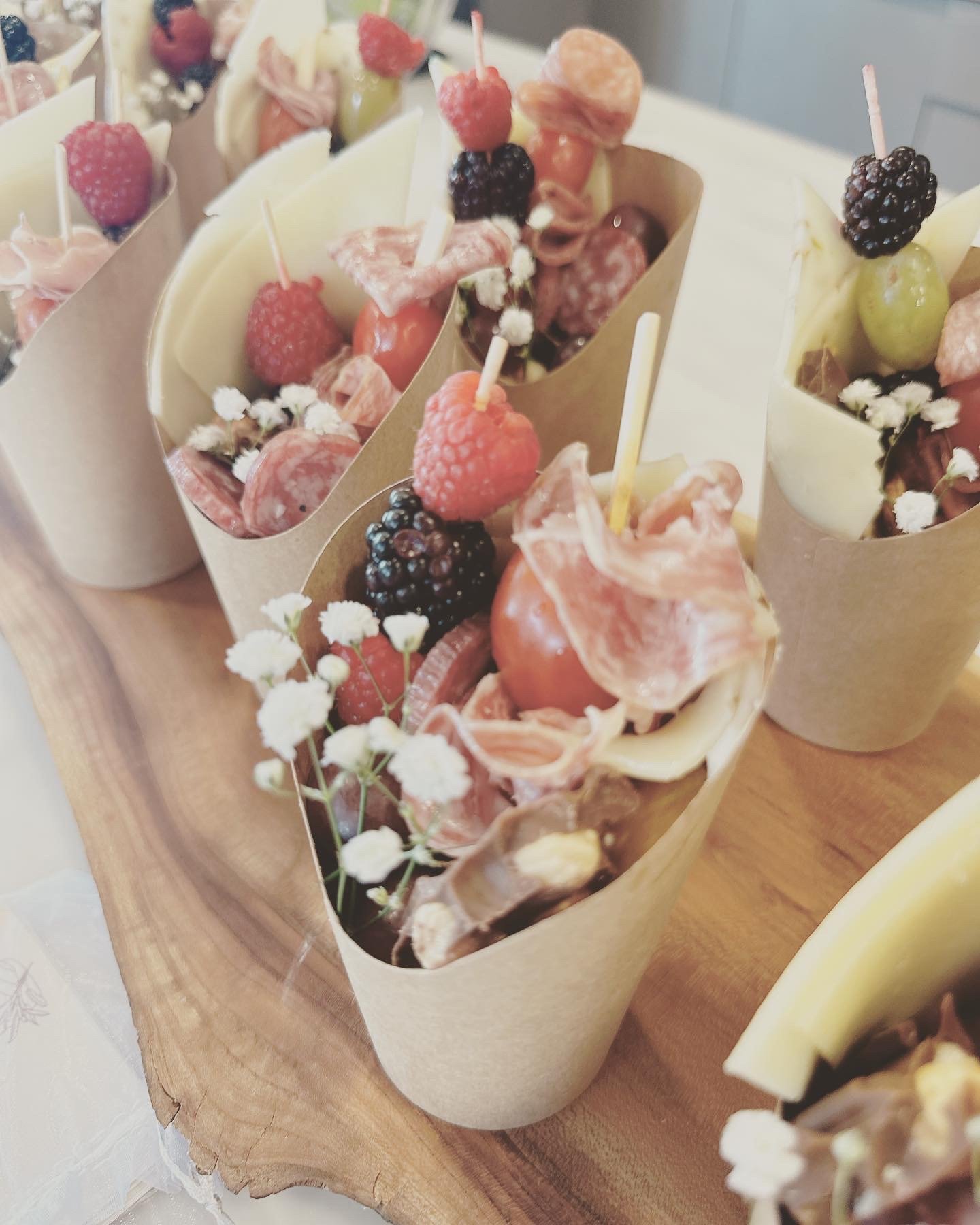 Our charcuterie cups and bowls are a perfect grab-and-go option for your event! Individually portioned and beautifully arranged, each cup includes a selection of premium cheeses, cured meats, crackers, fresh fruits, nuts, and garnishes. Ideal for weddings, parties, or corporate gatherings, these single-serve delights combine convenience with elegance, ensuring your guests can mingle and munch with ease.